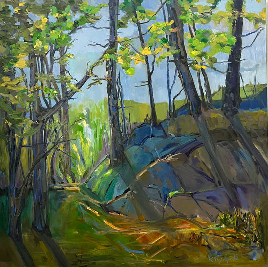 I am mesmerized by patterns, shapes and textures found in nature. Transforming a blank canvas into a landscape steeped in meaning and memory is what I live for as an artist. Before I put brush to canvas, I begin by sketching an outline in pencil and India ink. Then, using loose brush strokes and a limited palette, I give my paintings a contemporary feel. My preferred medium is oil, and I paint with a palette knife or brushes on either canvas or board.